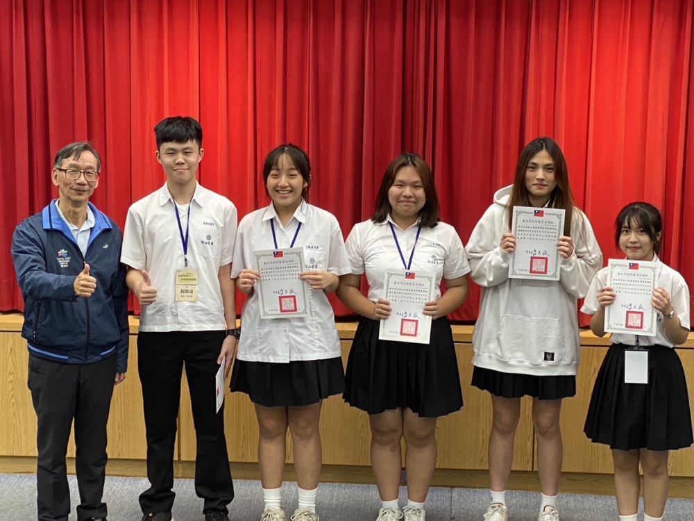全國高級中等學校112年專題實作及創意競賽複賽商業與管理群專題組佳作,商業經營科307班李綉婕、高靖涵、陳畇蓁、高庚辰、張博堯,指導老師周佳瑩